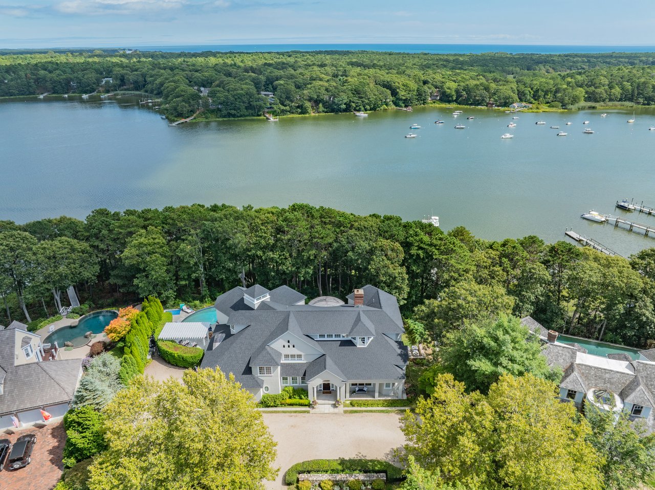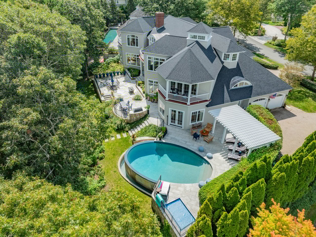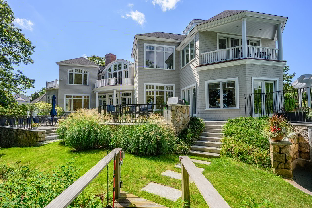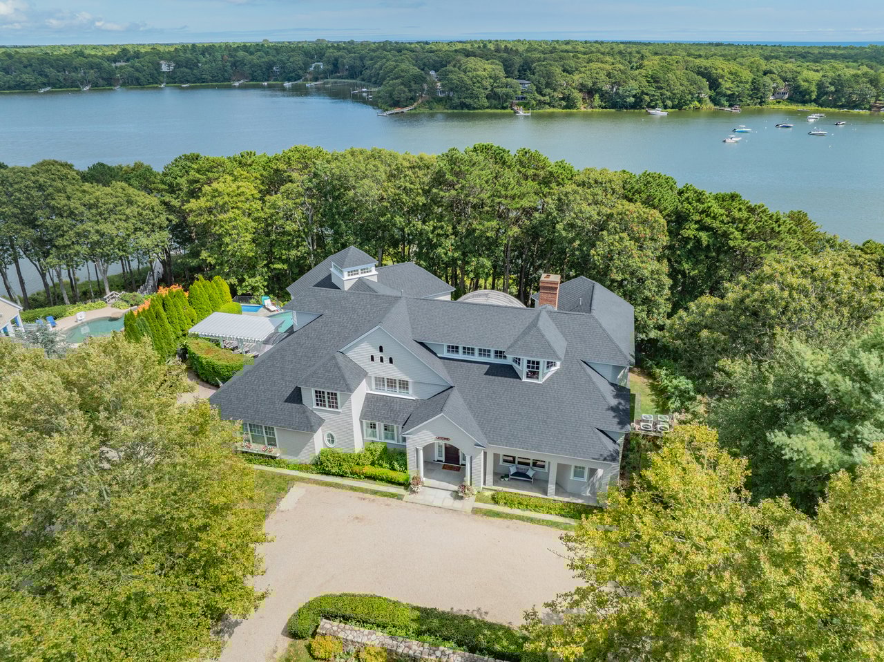 Set on the tranquil shores of Shoestring Bay within the gated community of Willowbend, this exceptional residence blends refined design with resort-style living. Conceived by architect Doreve Nicholaeff and masterfully built by Cataldo Custom Builders, the home radiates warmth and sophistication from the moment you arrive. Sunlight fills expansive living spaces designed for both relaxation and connection. The open kitchen and family room flow seamlessly to a generous bluestone patio overlooking the bay, ideal for dining al fresco or entertaining with ease. A built-in grill invites summer gatherings, while the heated pool, spa, and sweeping water views make every day feel like a retreat. The primary suite is a private sanctuary with dazzling water vistas, complemented by a serene home office or den for quiet moments. Upstairs, guests will appreciate private balconies that capture the sunrise and the beauty of the surrounding landscape. When adventure calls, launch from your own dock and explore Popponesset Bay and beyond. Offering exceptional privacy and a coveted resort lifestyle, this home is not to be missed!