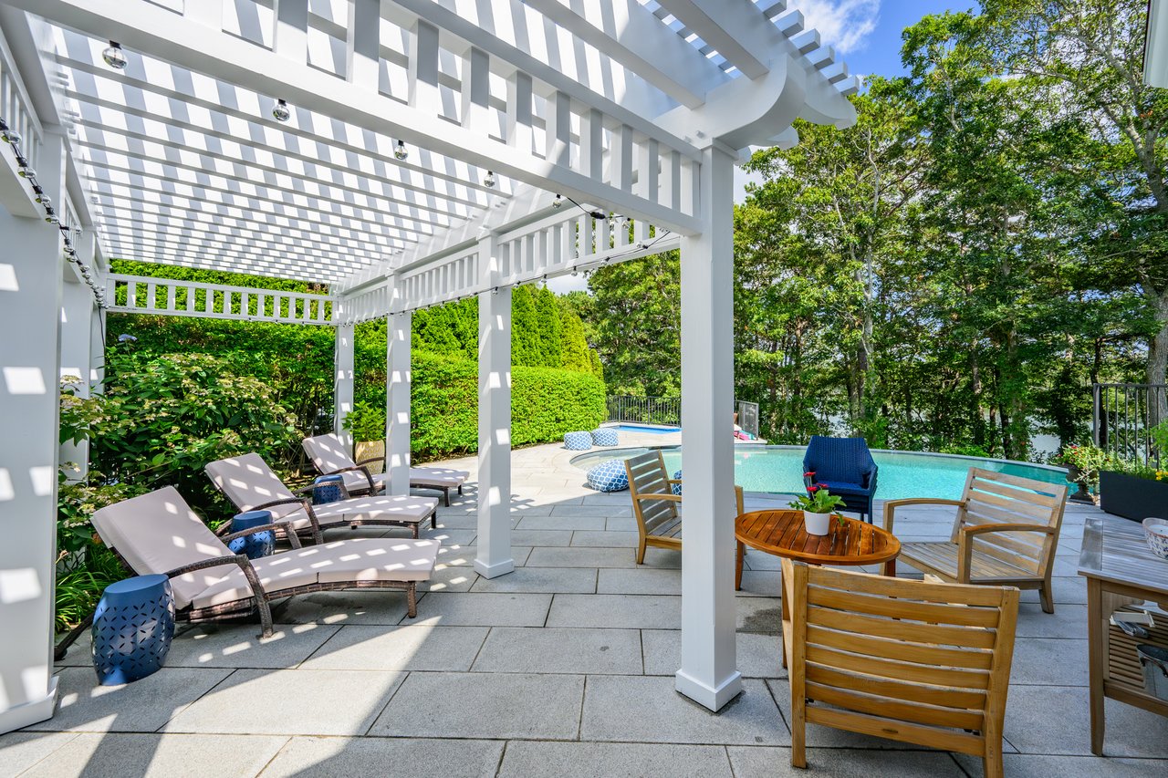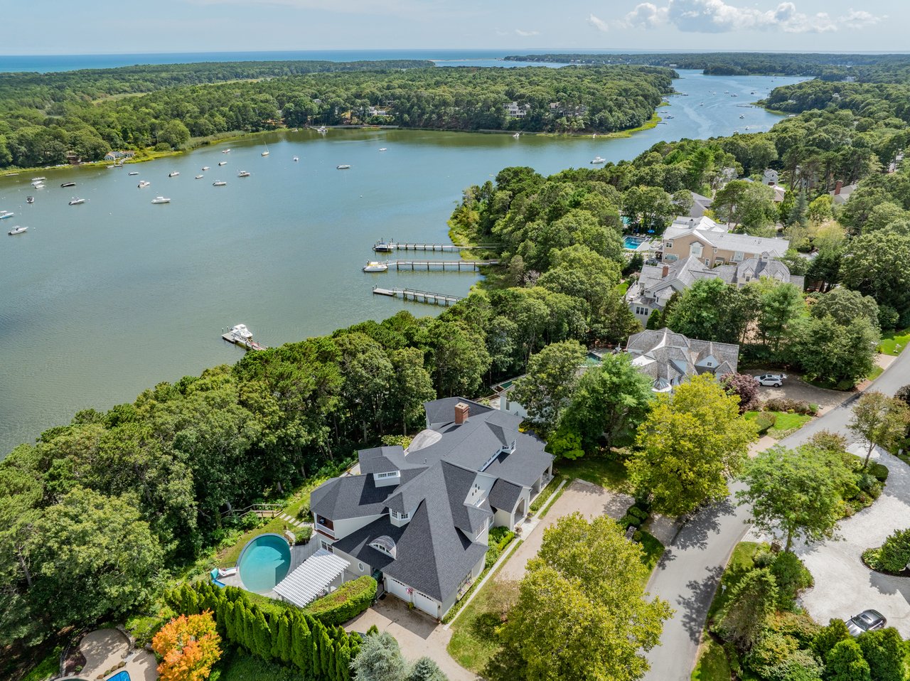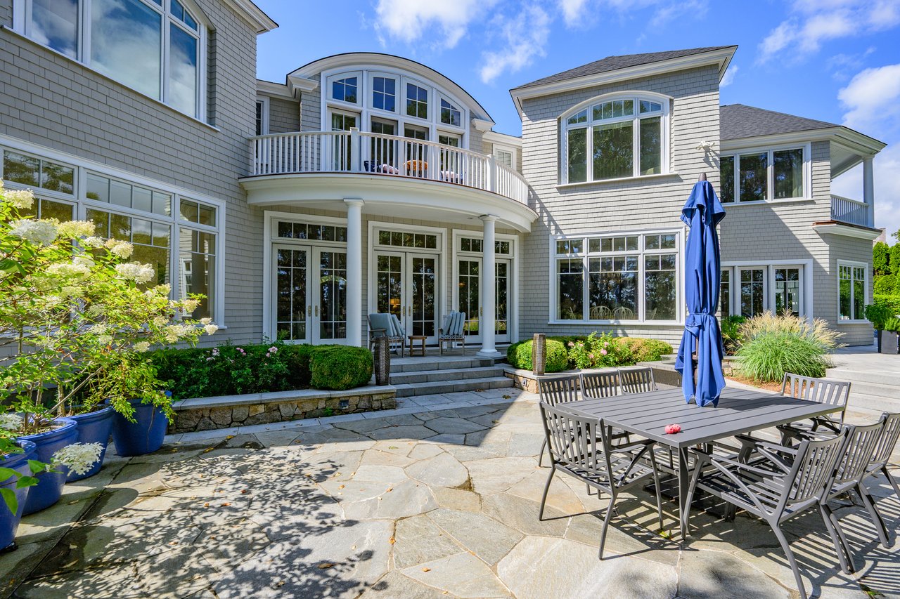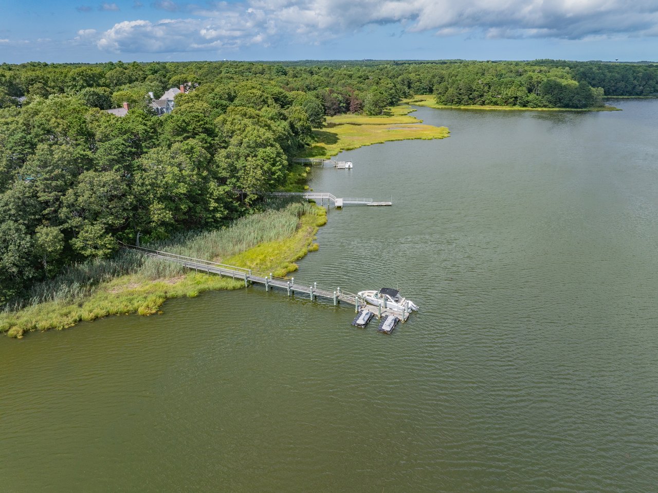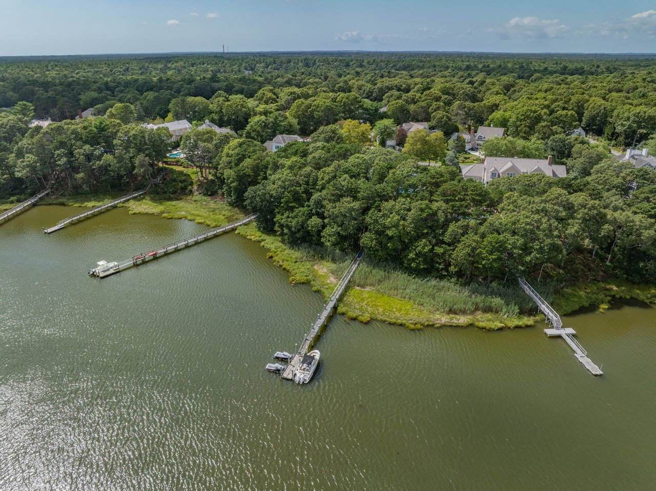 Set on the tranquil shores of Shoestring Bay within the gated community of Willowbend, this exceptional residence blends refined design with resort-style living. Conceived by architect Doreve Nicholaeff and masterfully built by Cataldo Custom Builders, the home radiates warmth and sophistication from the moment you arrive. Sunlight fills expansive living spaces designed for both relaxation and connection. The open kitchen and family room flow seamlessly to a generous bluestone patio overlooking the bay, ideal for dining al fresco or entertaining with ease. A built-in grill invites summer gatherings, while the heated pool, spa, and sweeping water views make every day feel like a retreat. The primary suite is a private sanctuary with dazzling water vistas, complemented by a serene home office or den for quiet moments. Upstairs, guests will appreciate private balconies that capture the sunrise and the beauty of the surrounding landscape. When adventure calls, launch from your own dock and explore Popponesset Bay and beyond. Offering exceptional privacy and a coveted resort lifestyle, this home is not to be missed!