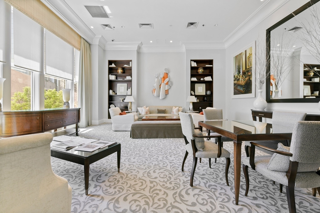 Rarely available two-bedroom residence with dazzling views at The Belvedere, one of Boston's finest full-service buildings. Directly overlooking the Christian Science Reflecting Pool, designed by renowned architect I.M. Pei, this exquisite home features a gracious floor plan with light-filled rooms and a fully outfitted kitchen with custom cabinetry and top-of-the-line appliances. The luxurious primary suite includes equally stunning views of the reflecting pool, a well-appointed bathroom, and a walk-in closet. A guest bedroom, also overlooking the Christian Science Plaza, offers endless flexibility and enjoys access to a full bathroom in the hallway. Additional features include two deeded garage parking spaces with the option of valet or self-park, 24-hour concierge, on-site storage, morning and afternoon refreshments in the residence library, and a roof terrace. All directly accessible to the restaurants and shops of the Prudential and Copley Malls, as well as Back Bay Station.