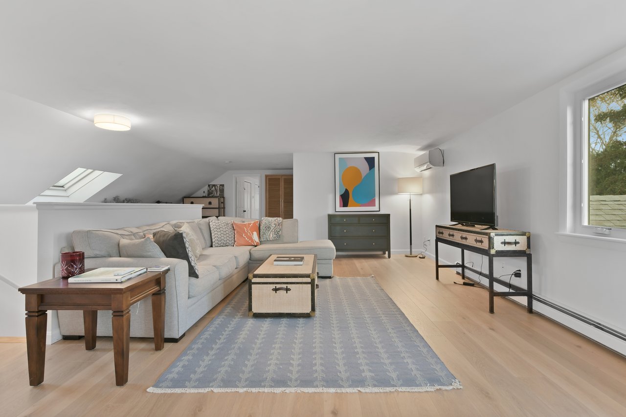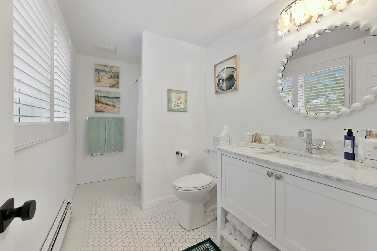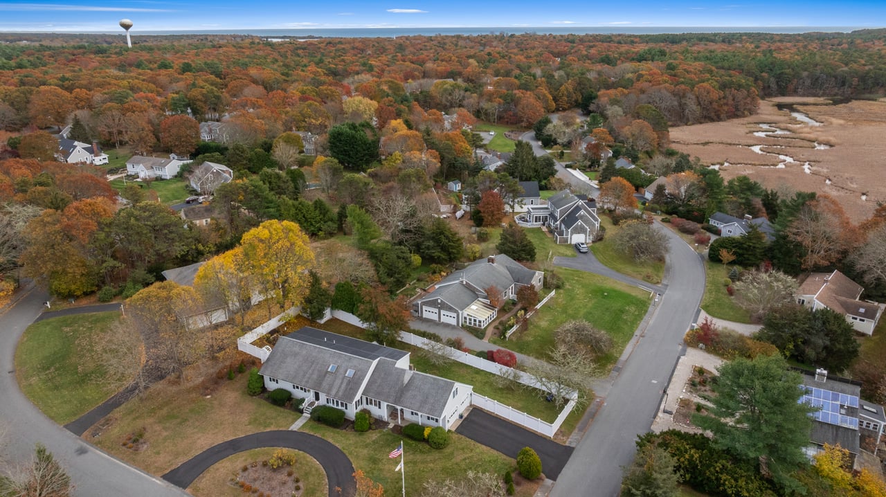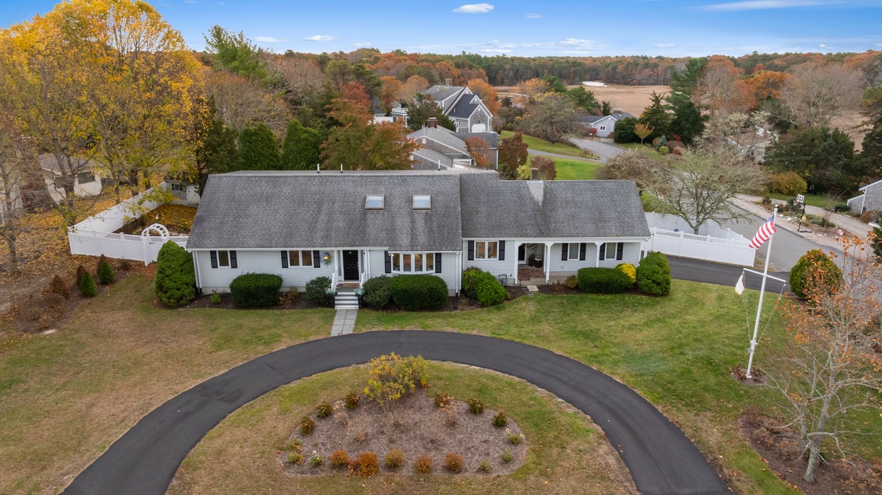 Set on a peaceful cul-de-sac in Cotuit, this charming Cape-style residence blends comfort, style, and flexibility across modern interiors. Gracious curb appeal welcomes guests, while a thoughtful layout opens seamlessly to a well-appointed living room filled with natural light that pours through glass doors leading to a three-season sunroom. At the heart of the home, a sleek eat-in kitchen with stainless steel appliances overlooks the lush backyard. An adjacent office connects to the formal dining room, ideal for entertaining, with peekaboo pond views. One en suite bedroom, two additional guest bedrooms, and a full bathroom complete the main level.