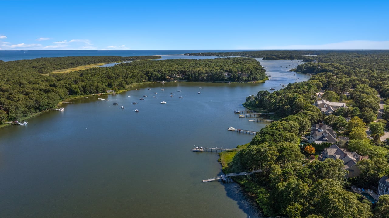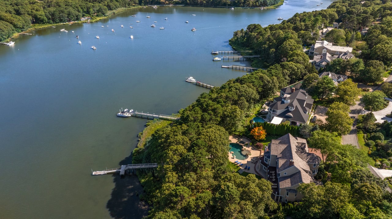 Discover resort-style living at its finest! Set behind the gates of Willowbend, one of Cape Cod's most sought-after resort communities, this extraordinary waterfront home delivers an unsurpassed lifestyle. Designed to cater to indoor and outdoor living, the expansive deck and poolside terrace enjoy a breathtaking backdrop over Shoestring Bay, while the private dock with access to Nantucket Sound offers endless opportunities for boating, paddleboarding, and more. Inside, the six-bedroom residence showcases superlative quality and craftsmanship throughout, with custom millwork, marble countertops, and top-of-the-line finishes. At the heart of the home, the gourmet kitchen boasts Lewis & Weldon custom cabinetry, a Viking range, and a breakfast bar. The open layout seamlessly flows to the living and dining areas overlooking the bay, with folding glass doors that can be opened to merge indoor and outdoor spaces. Conveniently set on the first floor, the primary suite enjoys a luxurious bathroom, breathtaking views, and direct access to the waterside deck spanning the length of the home. From the exquisite wood-paneled office to the well-appointed guest bedrooms, each with en suite baths, no detail has been overlooked. The walk-out lower level offers media and game rooms, a kitchenette, and a full bath that doubles as a pool cabana. Set behind 24-hour security gates, Willowbend residents enjoy an exclusive lifestyle with 27 holes of championship golf, tennis and pickleball courts, a fitness center, an Olympic-sized swimming pool, fine dining, and a vibrant, close-knit community. Located minutes from beaches, shopping, and everything else the area has to offer, this exceptional waterfront home presents a rare opportunity in an unrivaled setting.